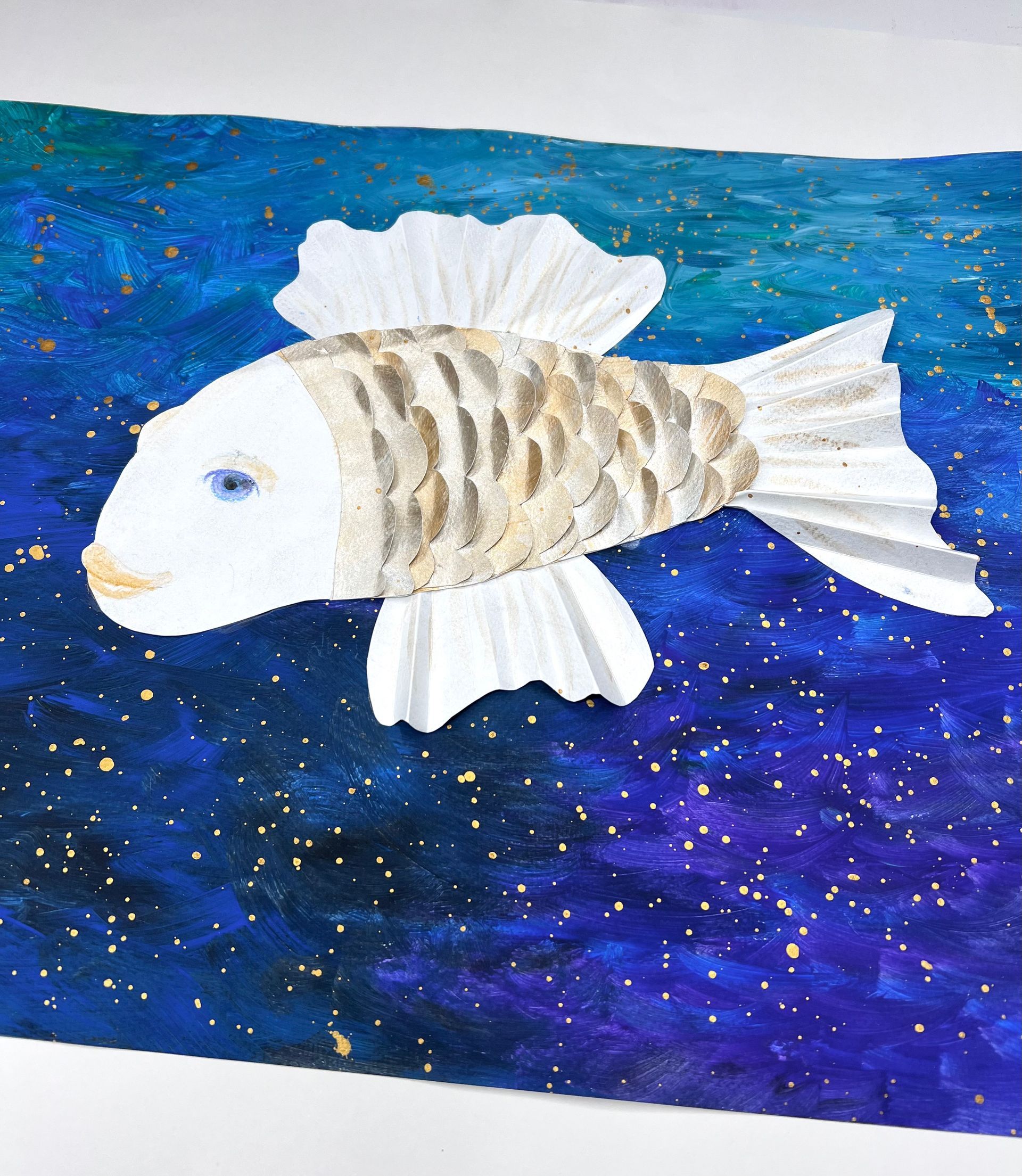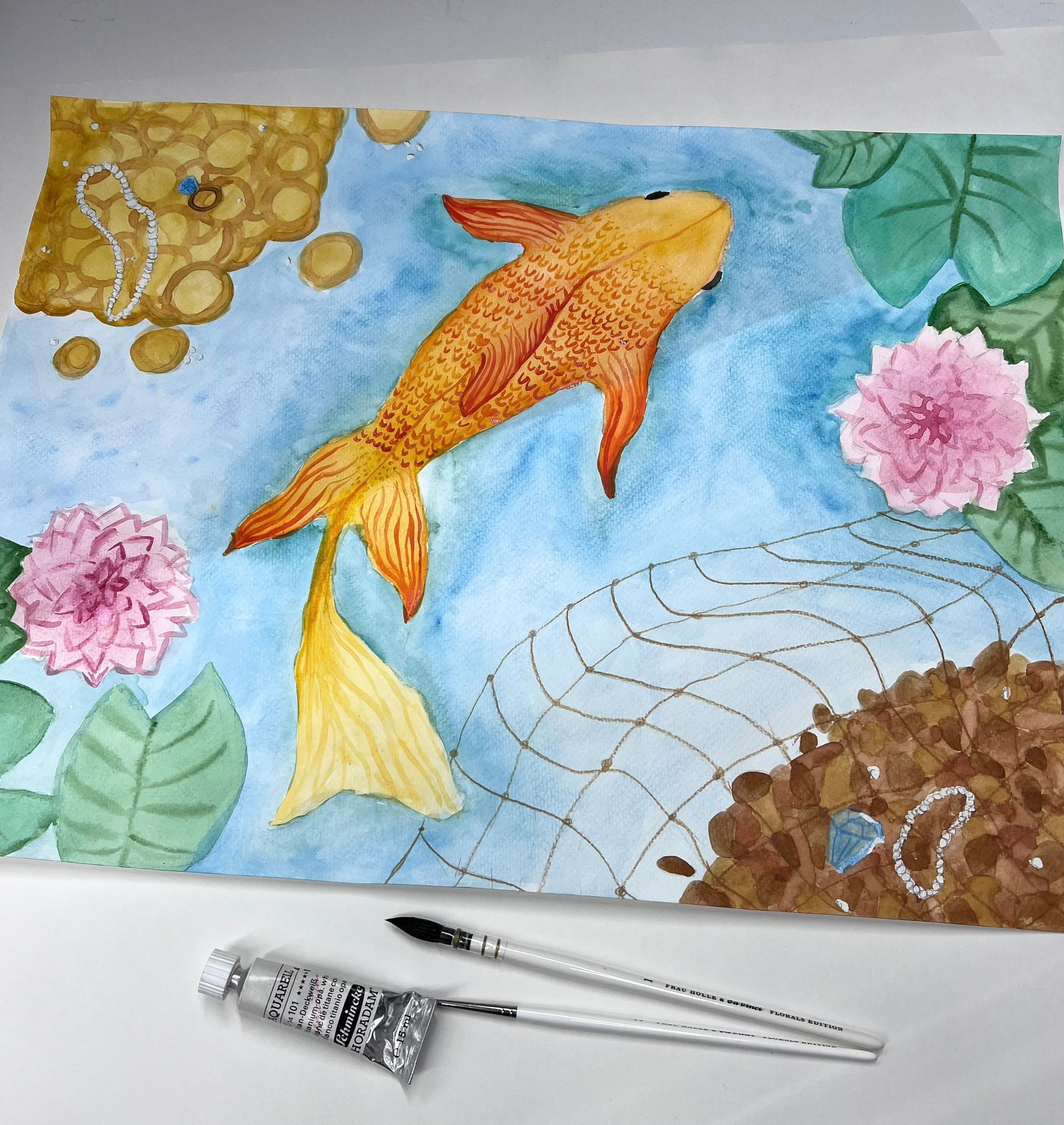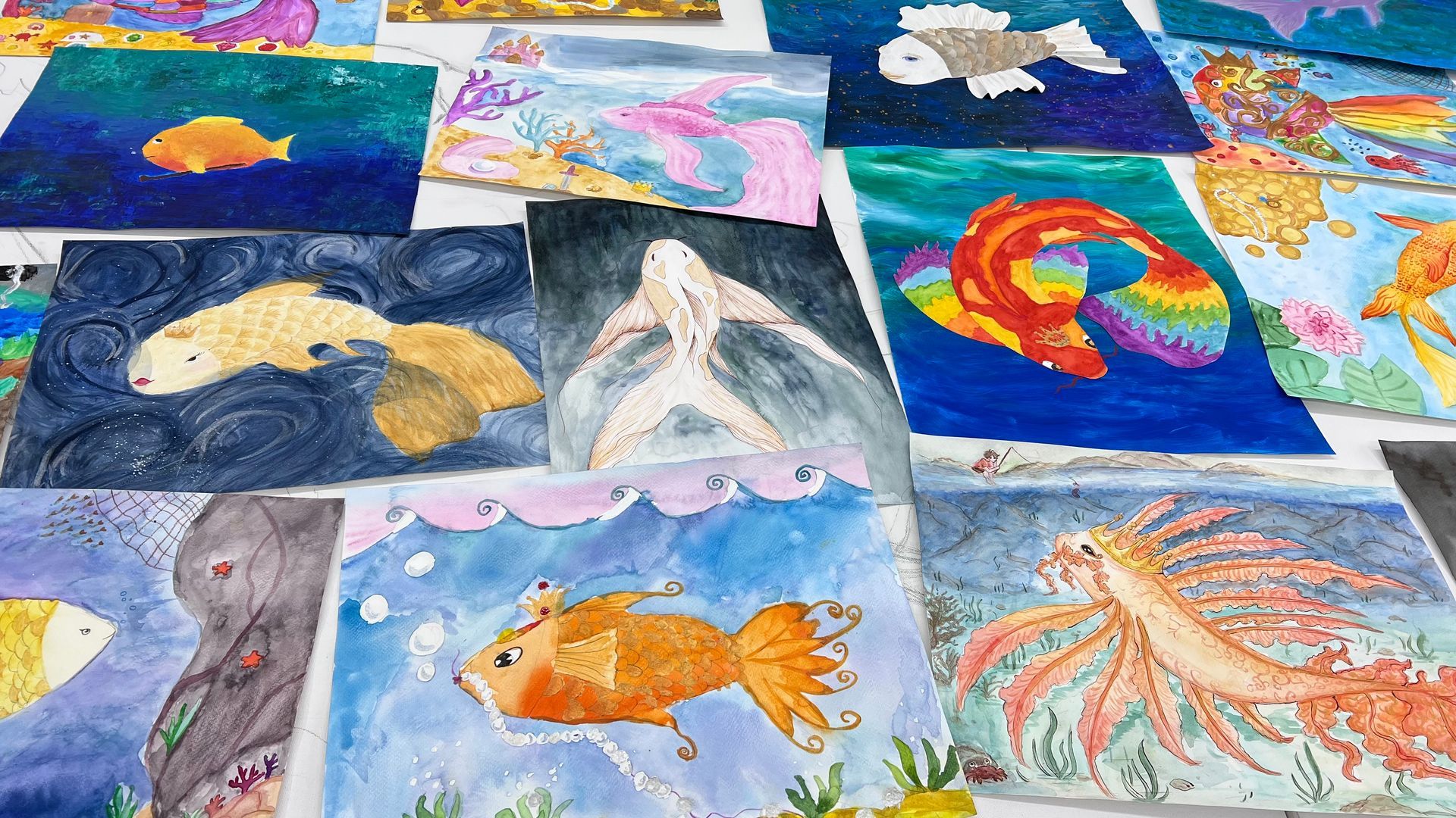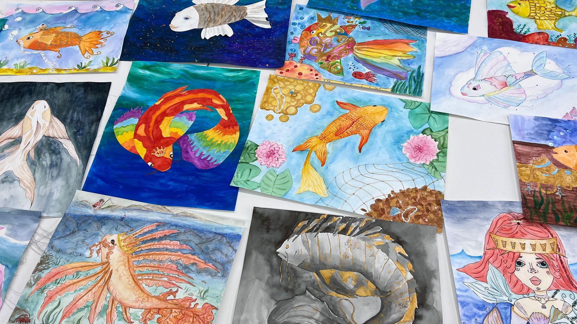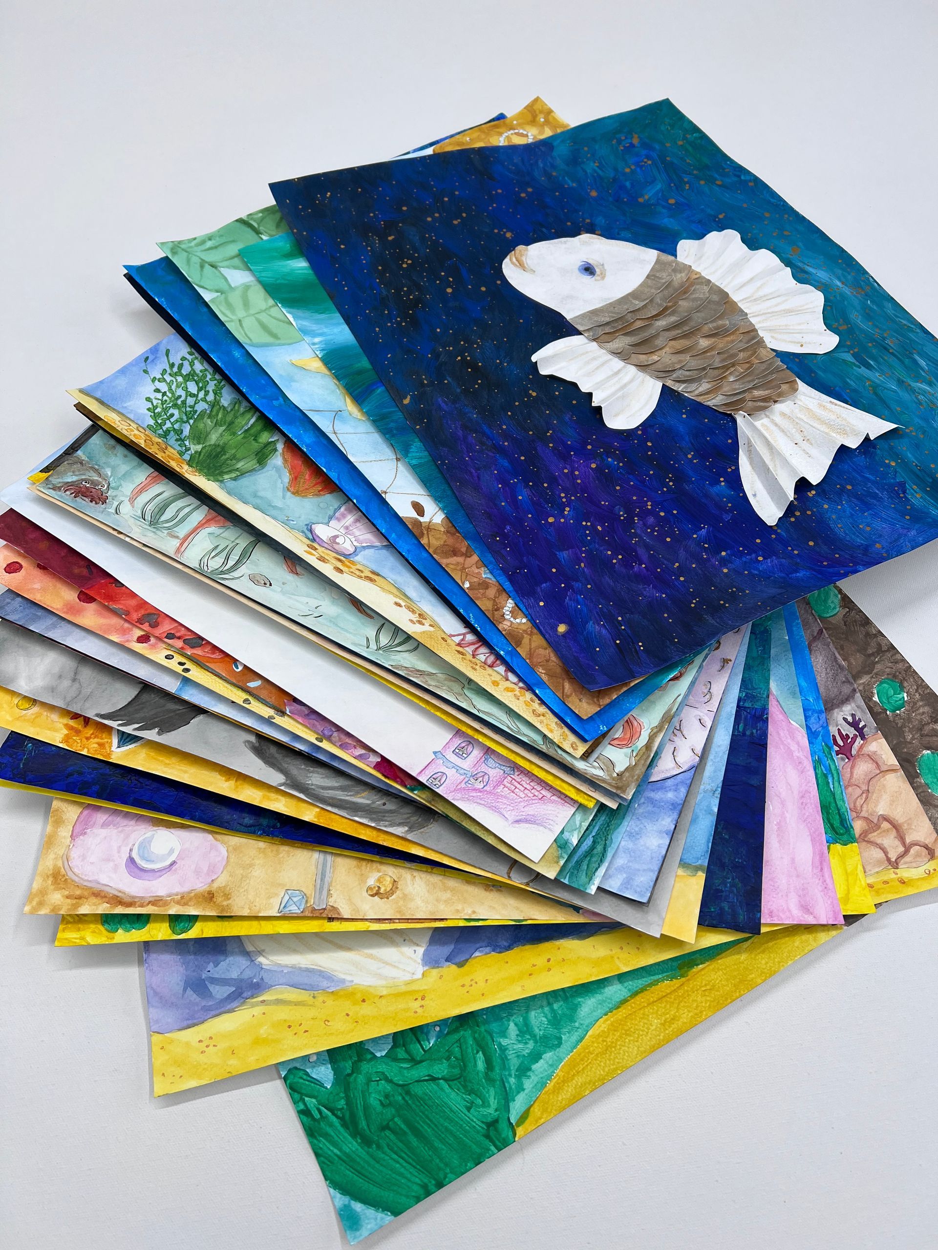 Unter allen Einsendungen wurden die schönsten Fische ausgewählt und ihre Maler:innen mit einem kleinen Preis belohnt.